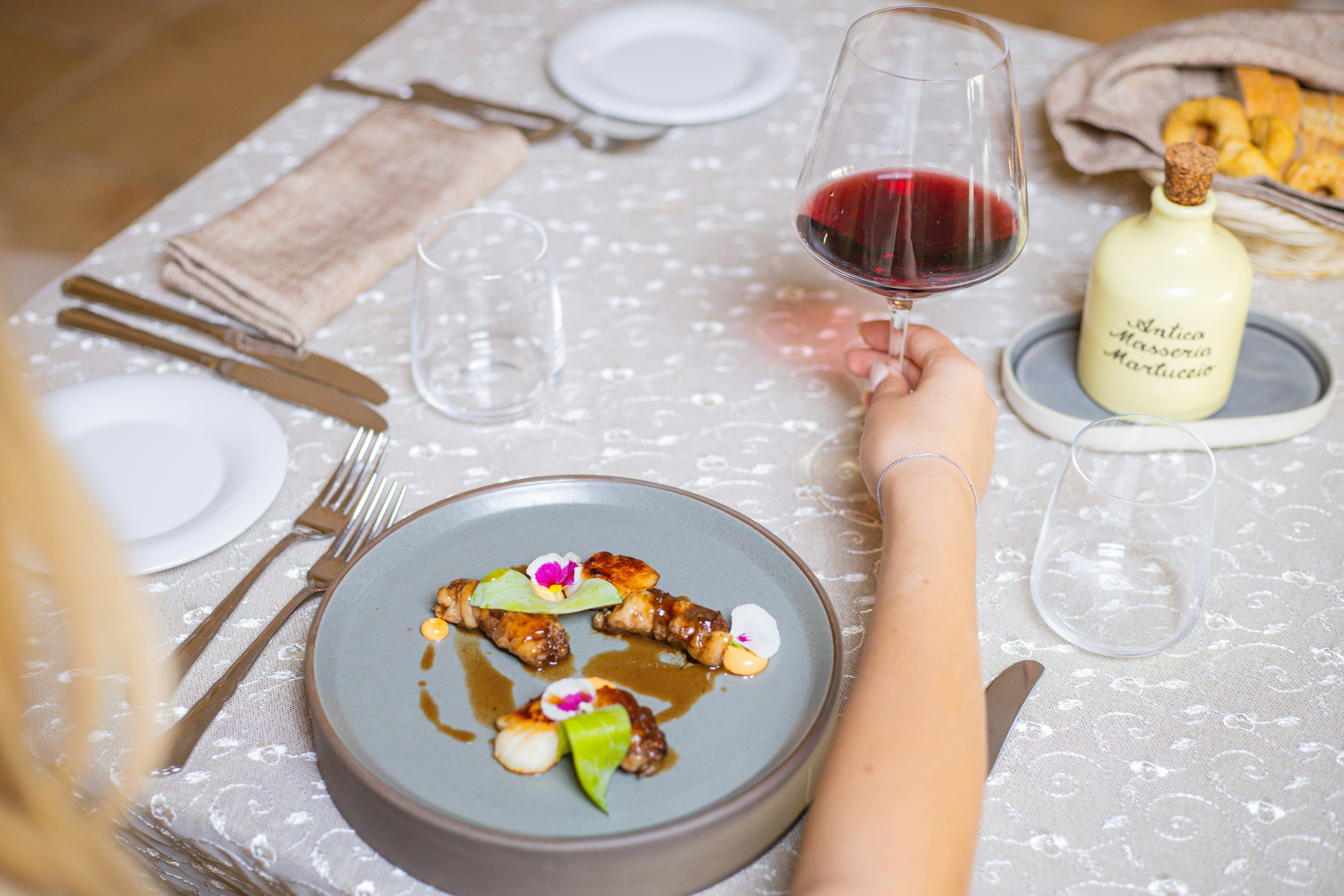 Nel cuore del Salento, il nostro ristorante accoglie gli ospiti tra antiche volte in pietra e il calore di tre camini sempre accesi. Qui la storia incontra la cucina d’autore: ingredienti locali, ricette tradizionali reinterpretate con eleganza e una selezione di vini che raccontano la Puglia.