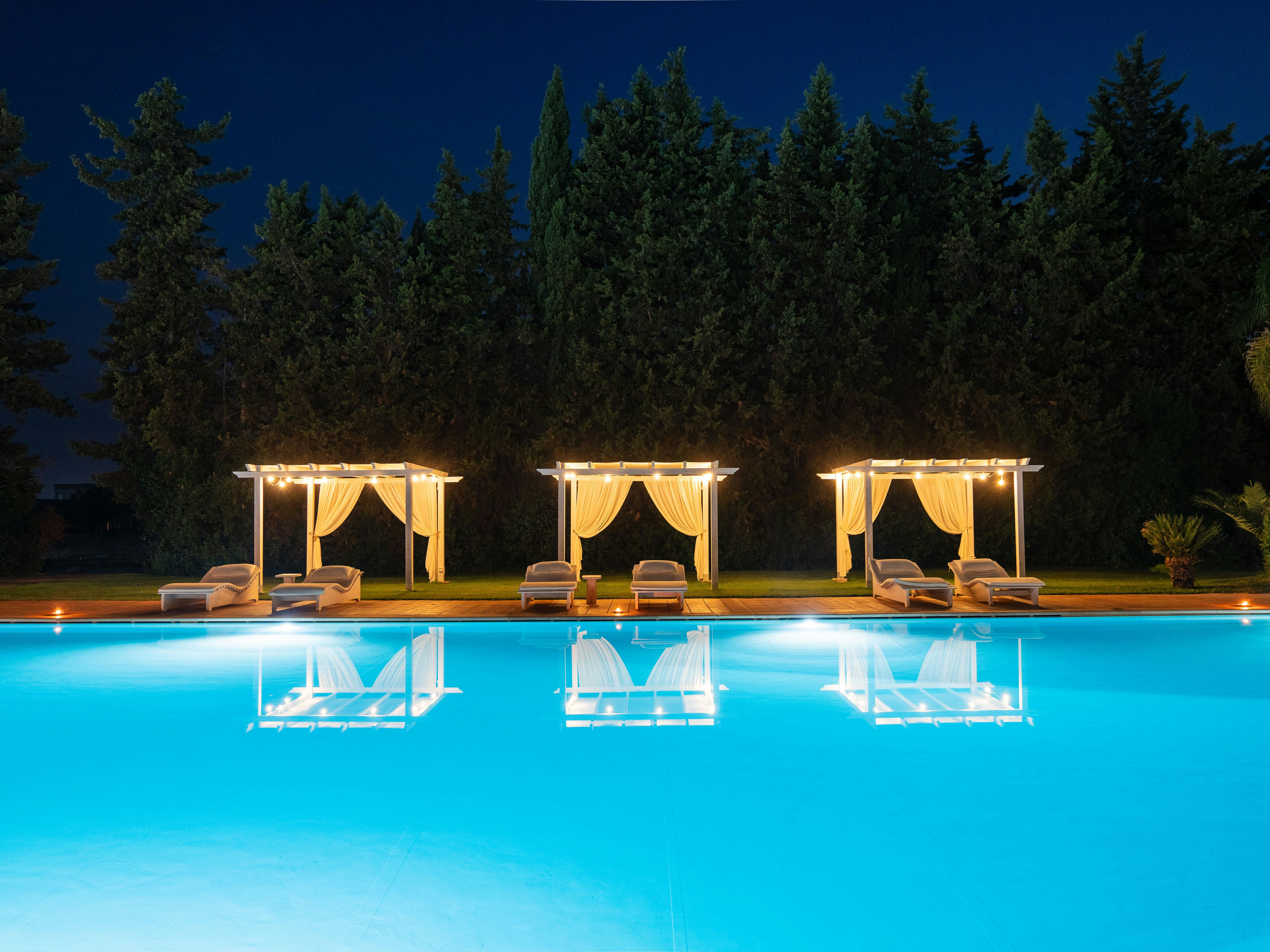 The Gazebo Pool is a place where simplicity meets elegance,. With its traditional and refined style, this welcoming space overlooks our lush garden and large pool, creating an ideal setting for celebrations immersed in the beauty of Apulian nature.